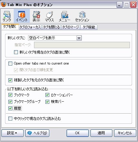[ツール]>[オプション]>[Tab Mix Plusのオプション]