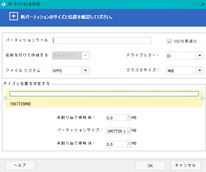 EaseUS Partition MasterのSSD最適化(4Kアライメント)機能